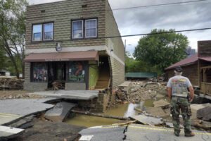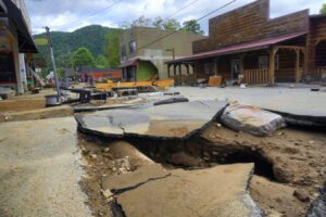 As the waters receded, the true scale of the devastation became painfully clear. Many of our neighbors’ homes had been damaged, some nearly beyond repair. Our downtown commercial district, once the heart of the community, was left in ruins. The sidewalks that once welcomed Appalachian Trail thru-hikers and happy families soaking in the beauty of our mountains and natural hot springs now lay in pieces. The road that had once guided countless tourists and travelers was reduced to a tangled heap of rubble.