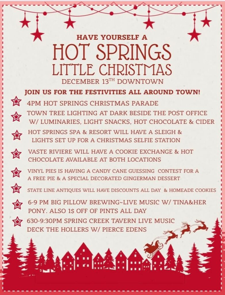 Hot Springs is coming together for a full evening of celebration on Saturday, December 13, and everyone is invited to join the fun. From small-town tradition to live mountain music under the winter sky, this year’s holiday lineup brings the community together in all the best ways.